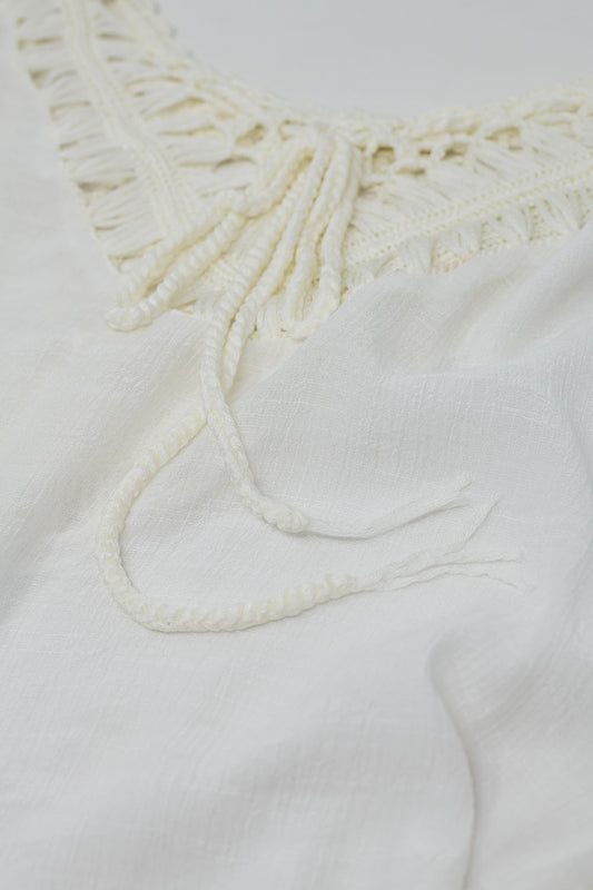Rebeca beige drapeada con diseño de ganchillo