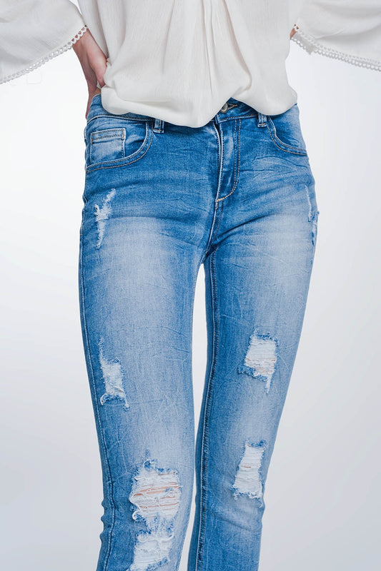 Vaqueros muy ajustados con lavado vintage y roturas marcadas