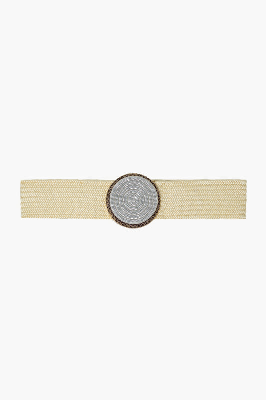 Cinturón tejido crema con hebilla redonda efecto mármol