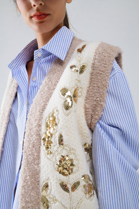 Chaleco Bordado Firework En Blanco Con Ribete Negro