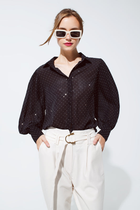Blusa de cuadros rojos y blancos sin cuello y mangas anchas