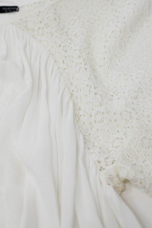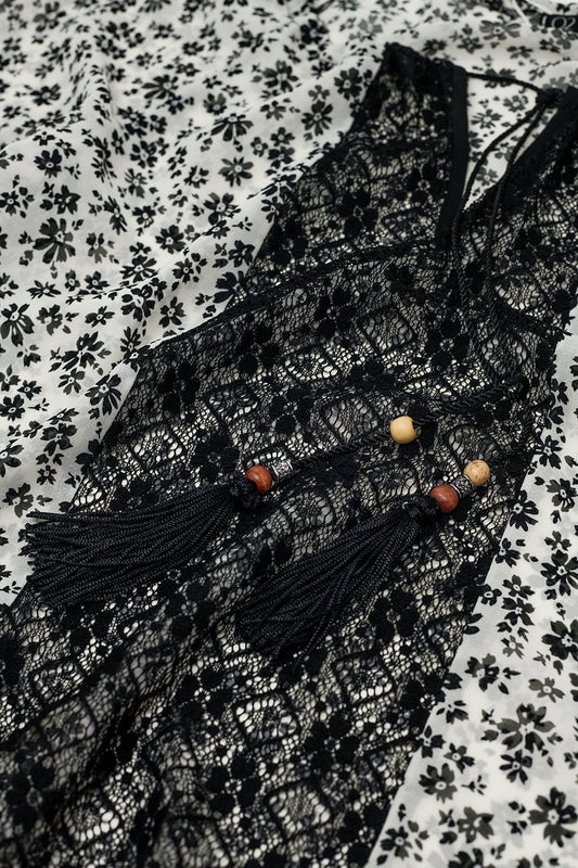 blusa de gasa con estampado de flores y detalle de encaje