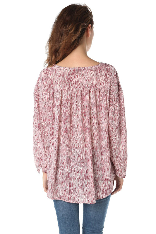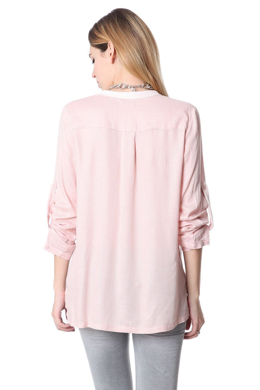 Blusa con escote de pico pronunciado y manga larga rosa