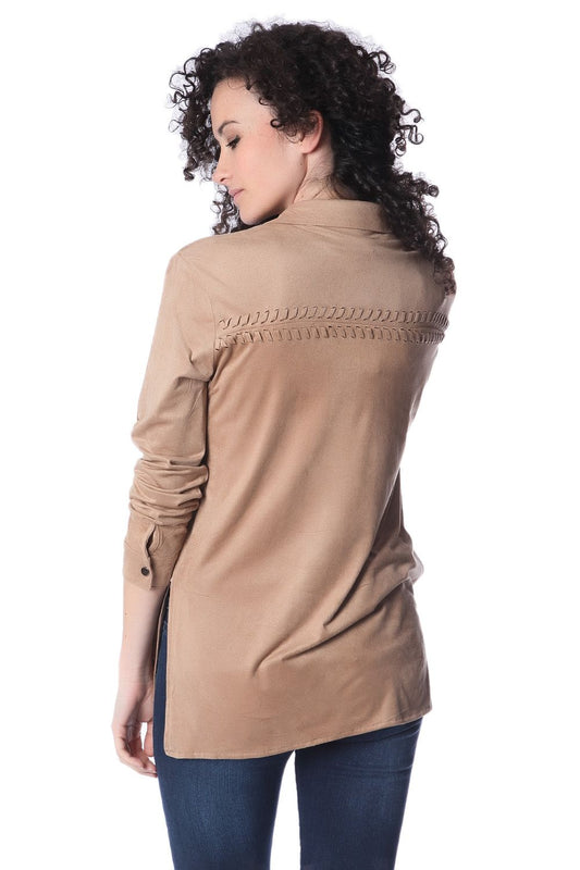 Camisa de manga larga beige con detalle anudado