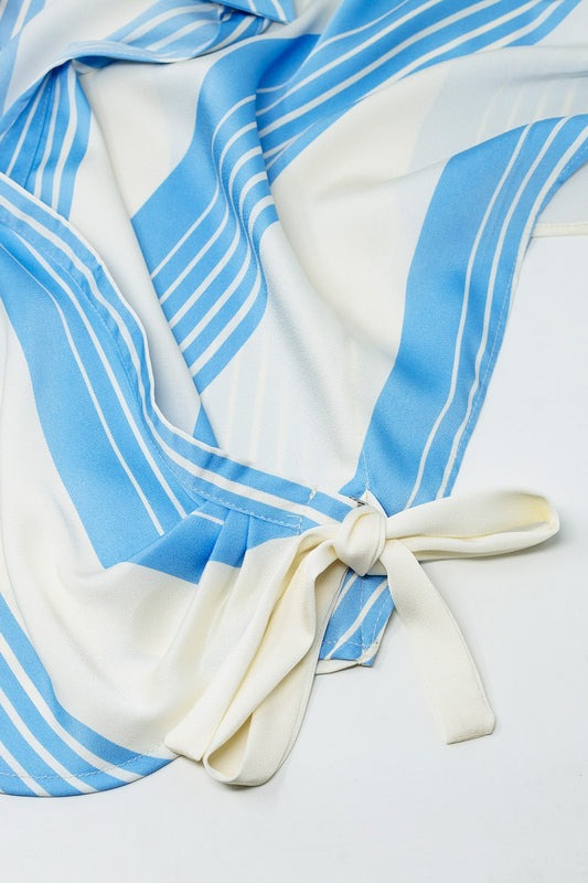 Camisa de raso Blanca Atada Al Lado Con Cuello En V