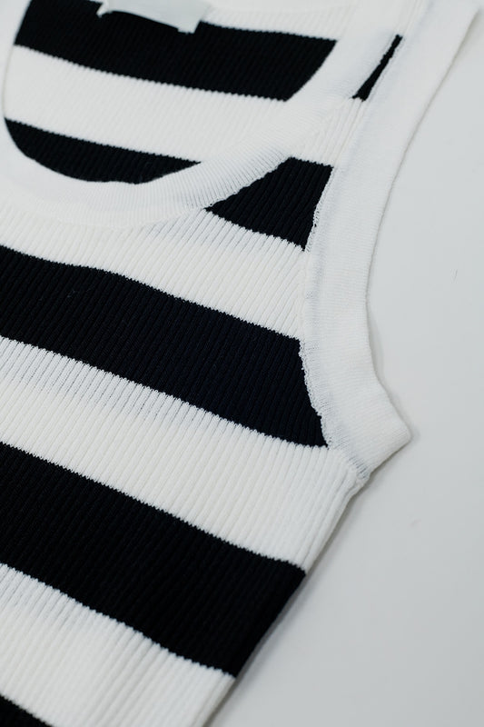 Camiseta de tirantes azul con diseño de rayas en diferentes tejidos