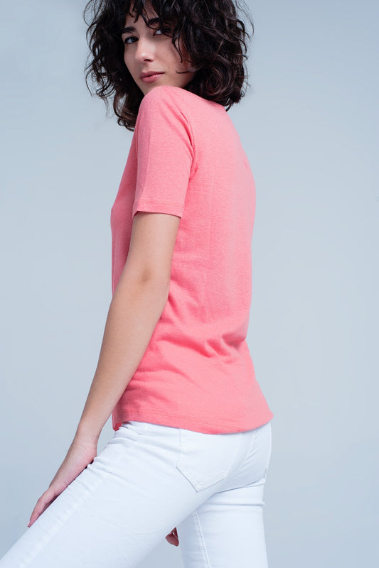 Camiseta Coral de manga corta con cuello de pico