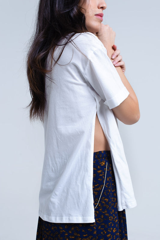 Camiseta blanca con un hombro abierto