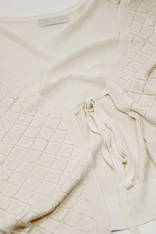 cárdigan corto de ganchillo beige con detalle de lúrex