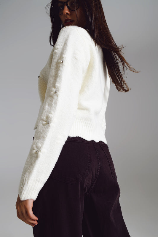Cárdigan marrón con flores tejidas y detalles adornados en verde militar