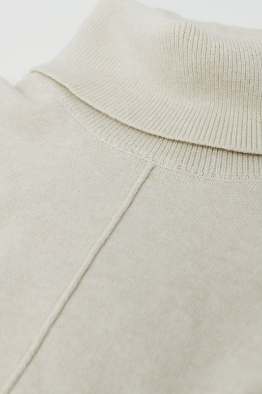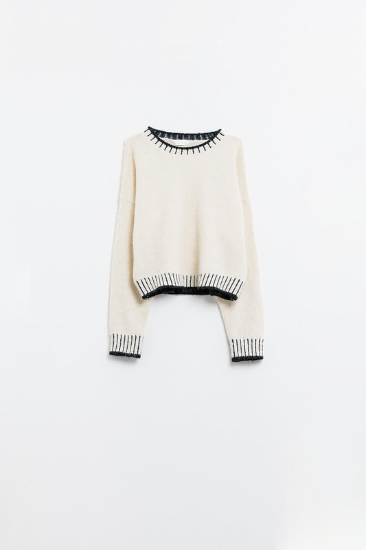 Suéter esponjoso de color crema con detalles de canalé en el cuello y el bajo