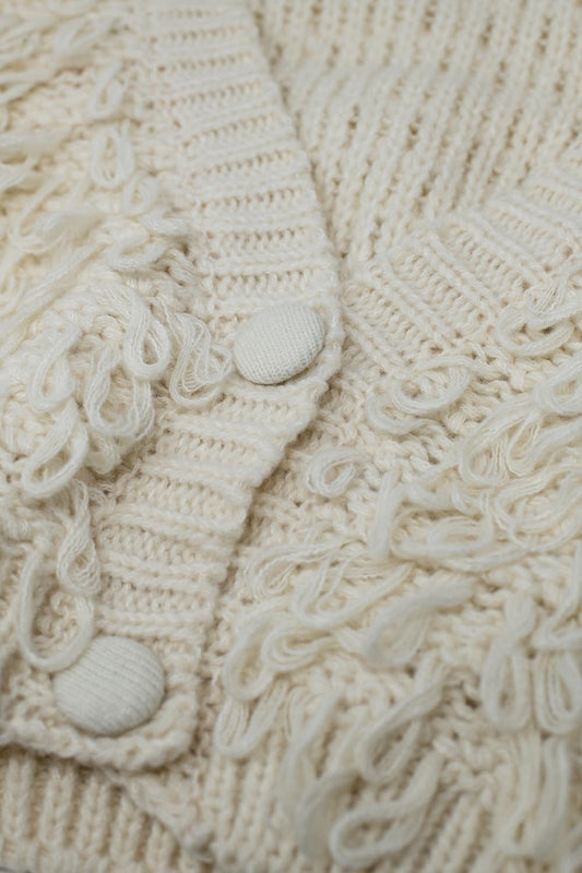 Chaqueta de punto grueso en color crema con flecos largos