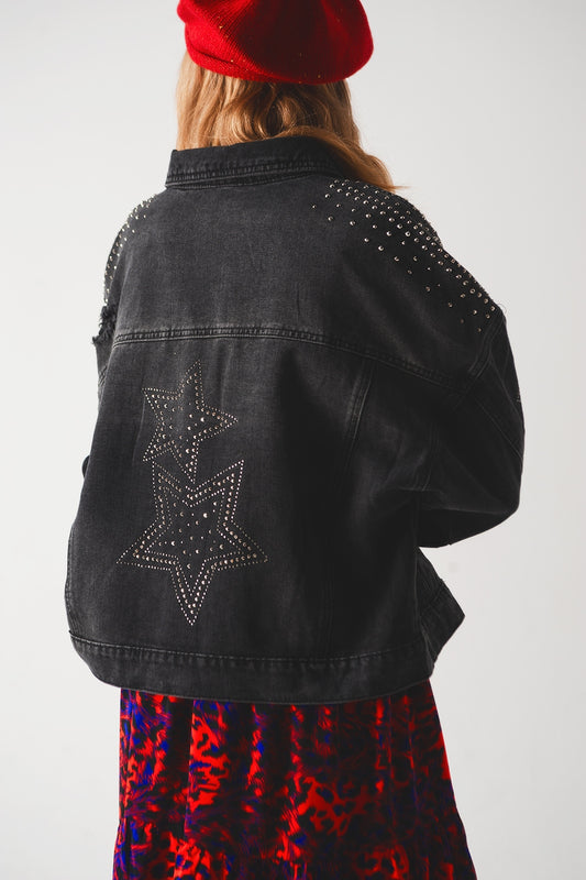 Chaqueta vaquera azul oscuro con bordado en la espalda
