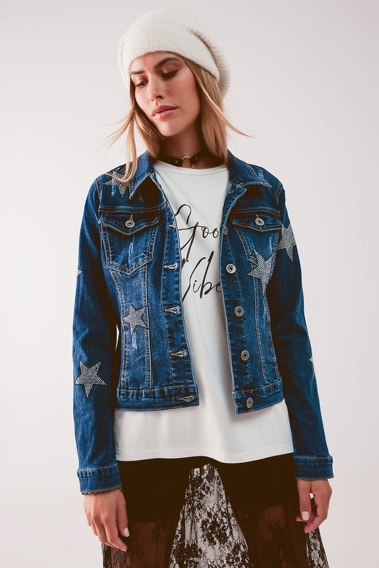 Chaqueta vaquera con adorno de estrella en lavado medio