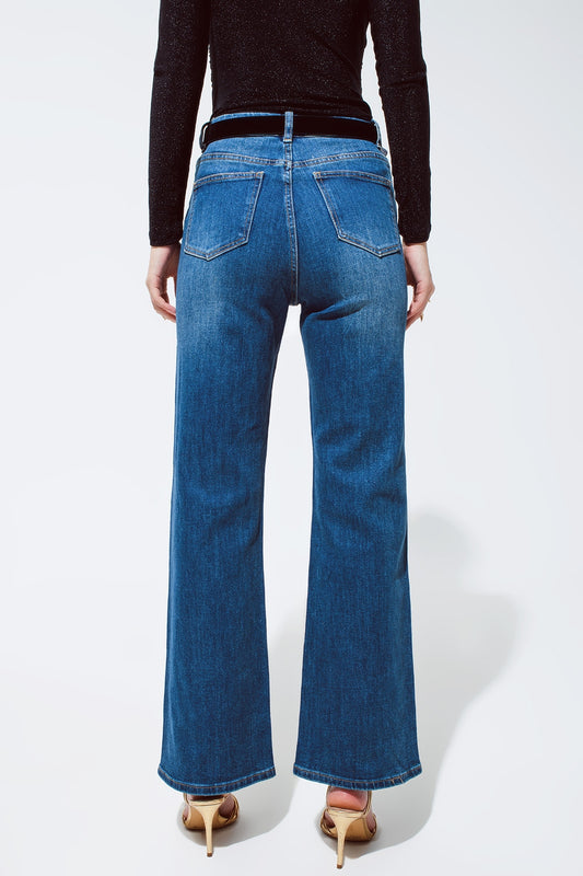 Vaqueros azules acampanados con dobladillo azul oscuro