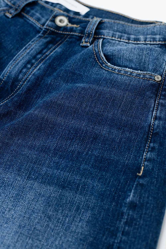 Vaqueros rectos con detalle de bolsillos delanteros en lavado medio