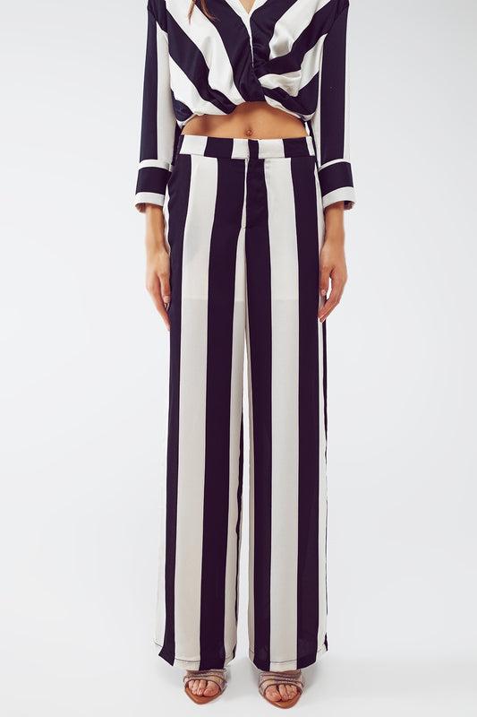 Pantalones rectos con diseño de rayas y ajuste holgado en blanco y negro.
