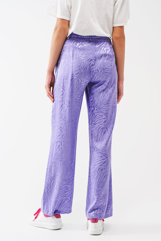 Pantalón suelto con estampado de cebra en morado