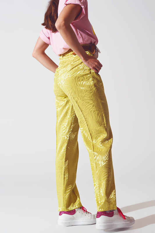 Pantalón recto con estampado de cebra en naranja