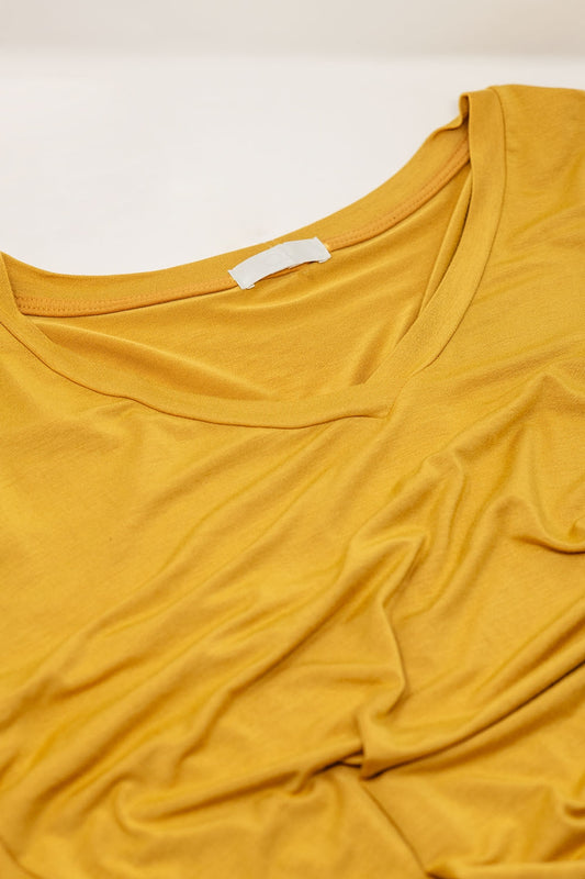 Top amarillo de manga larga y cuello de pico en modal