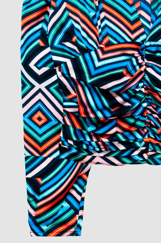 Camisa extragrande con detalles fruncidos en estampado floral colorido