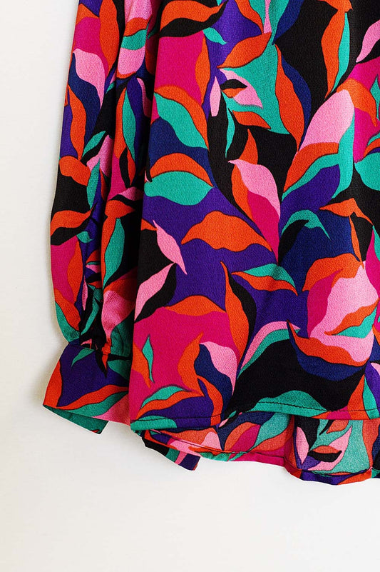 Camisa voluminosa extragrande con estampado abstracto de hojas coloridas