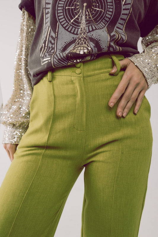 Vaqueros verdes de pernera acampanada con bajos sin rematar