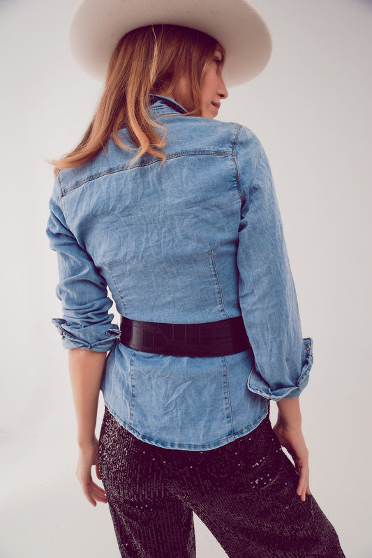 Pantalones cortos vaqueros azul medio con dobladillo vuelto