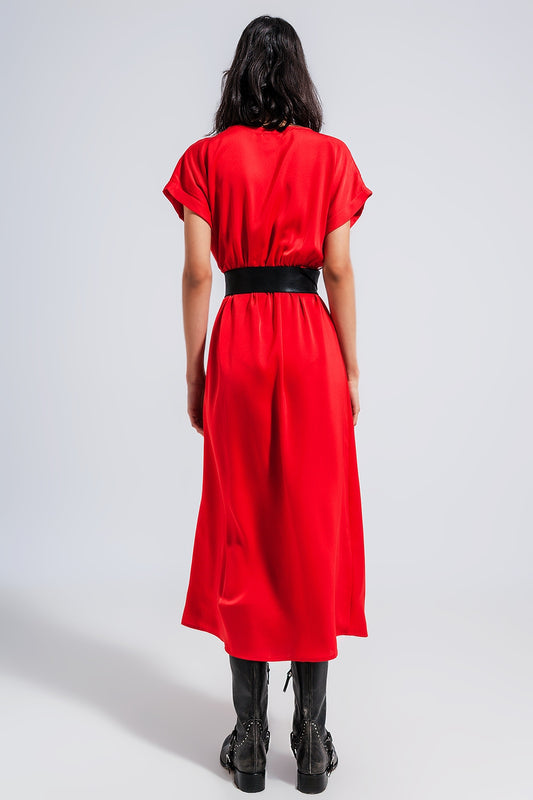 Vestido veraniego largo fuxia de tirantes con cintura fruncida