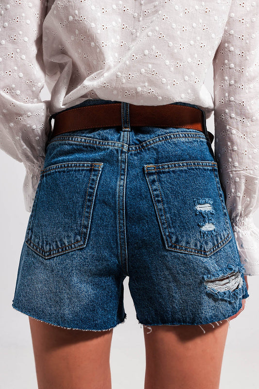 Shorts vaqueros con lavado medio de talle alto con diseño rasgado