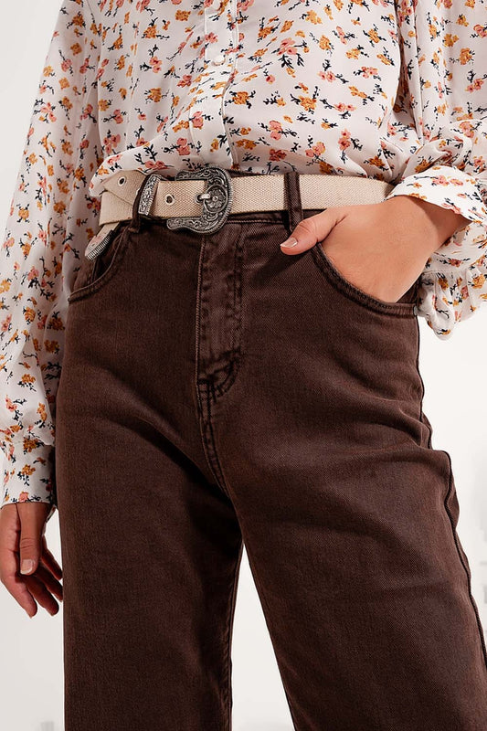Vaqueros mom marrón chocolate de tiro alto y corte holgado