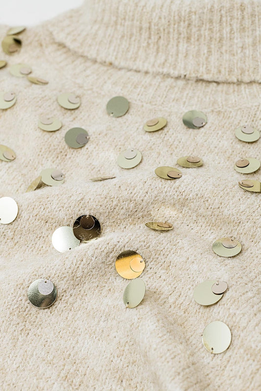 Jersey beige de cuello alto con detalles de lentejuelas
