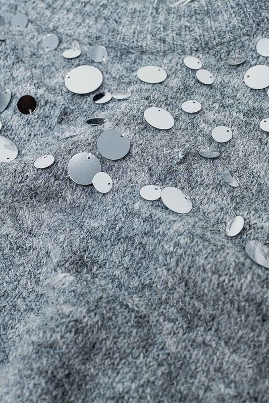 Jersey gris de punto suave con gran detalle de lentejuelas