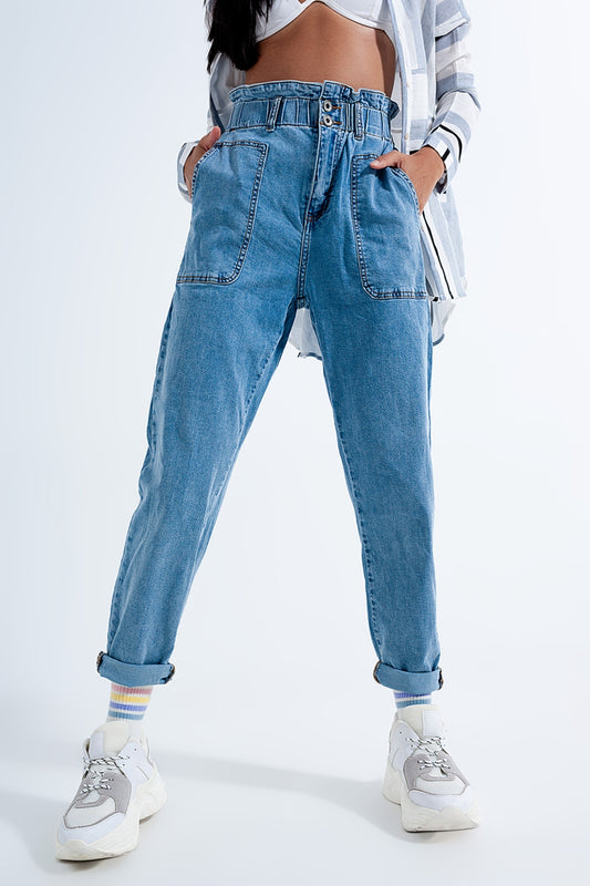 Vaqueros mom color azul medio con cintura tipo paperbag