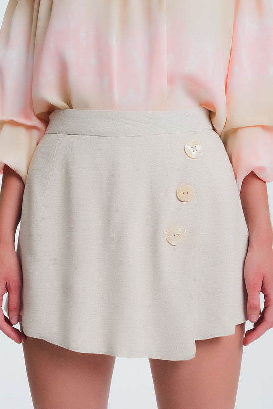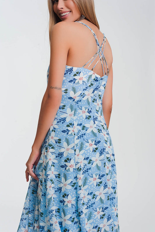 Vestido veraniego corto con escote Bardot y estampado floral marron