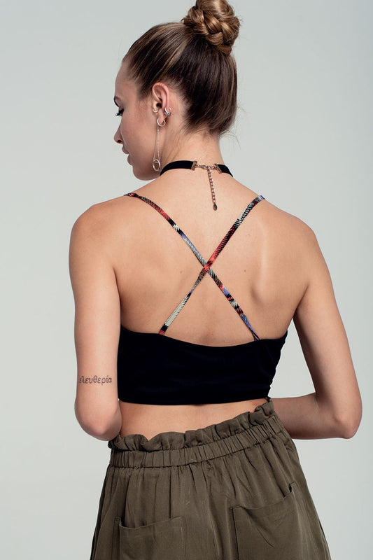 Top corto con diseño cruzado y estampado tribal en rojo