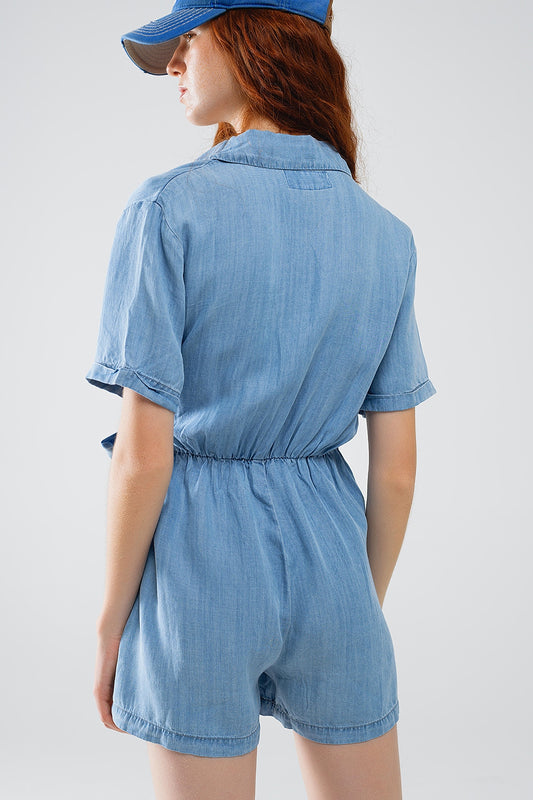 Mono vaquero de Tencel sin mangas con cintura elástica