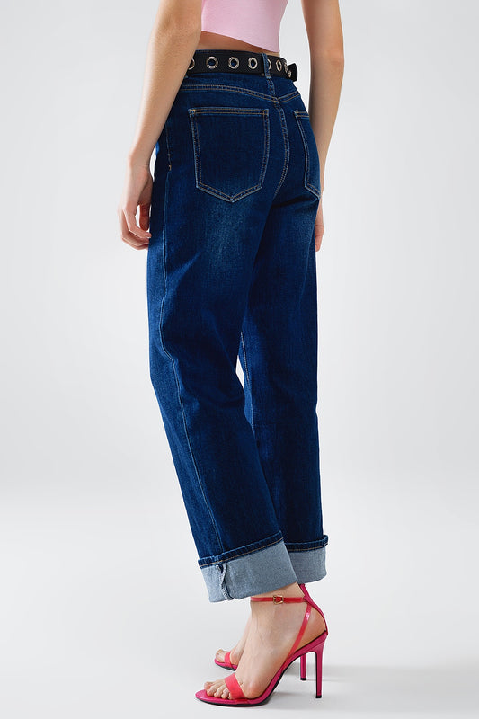 Vaqueros rectos azul oscuro con dobladillo plegado