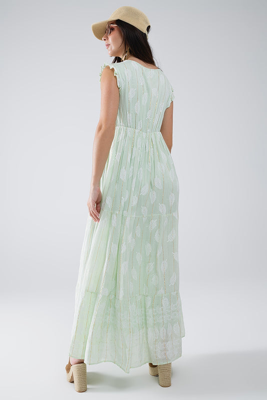 Maxi vestido boho con estampado de hojas y lúrex en color menta