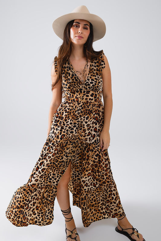 Vestido midi con estampado de leopardo