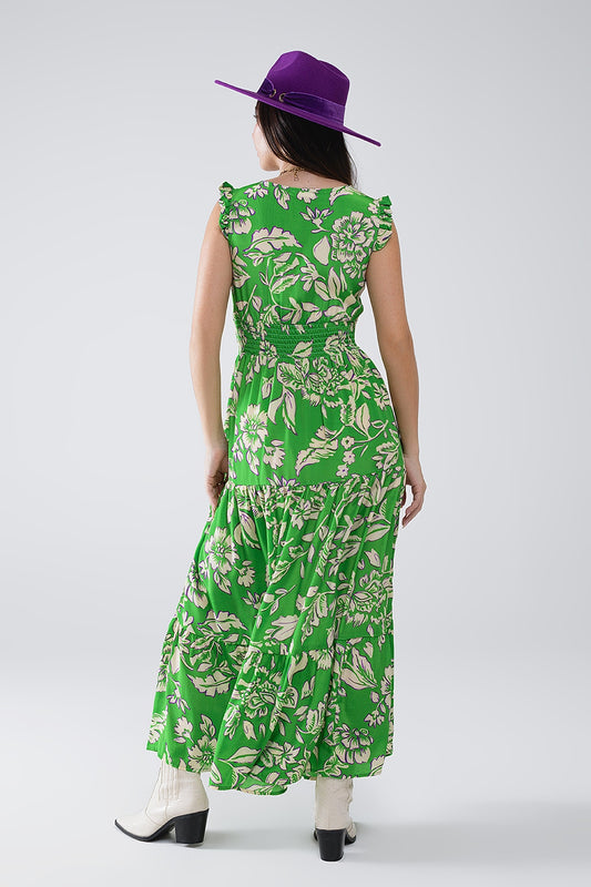 Maxifalda de tirantes con estampado floral verde