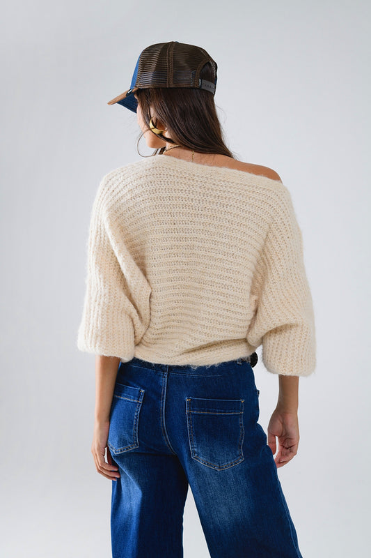 Chaqueta de punto de alta calidad extra suave y esponjosa en color crudo