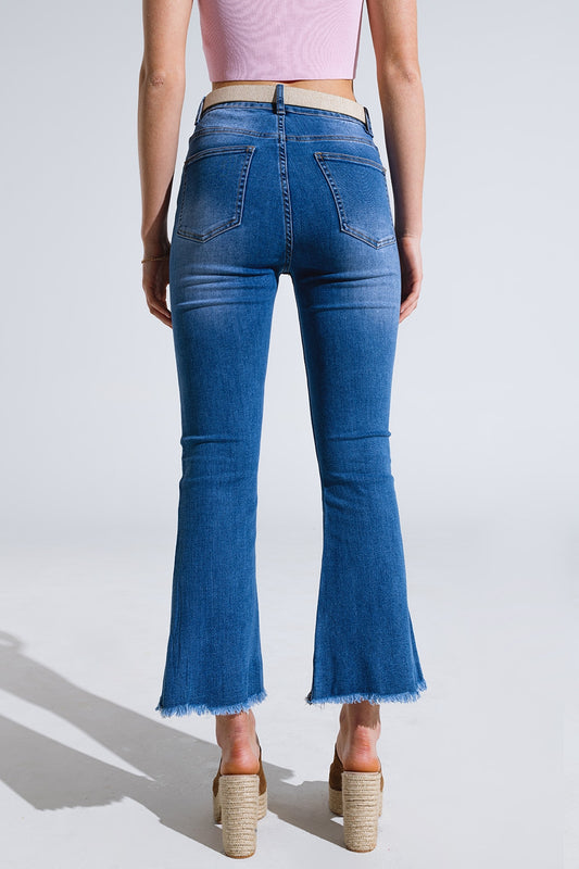 bEIGE Skinny Flared Jeans Con Bolsillo Delantero