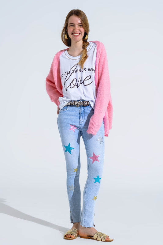 Chaqueta abierta oversize de punto mullido en color blanco con canalé en los puños y las mangas