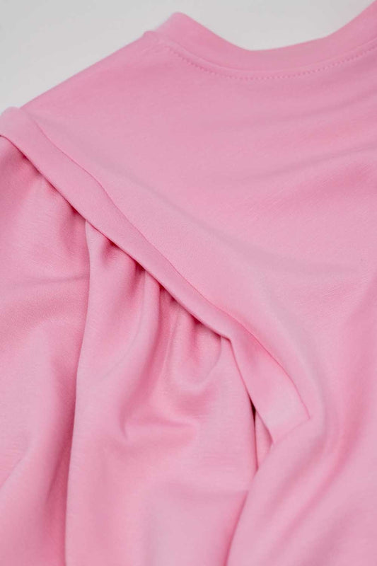 Jersey rosa de manga larga con detalles de costura frontal en los laterales