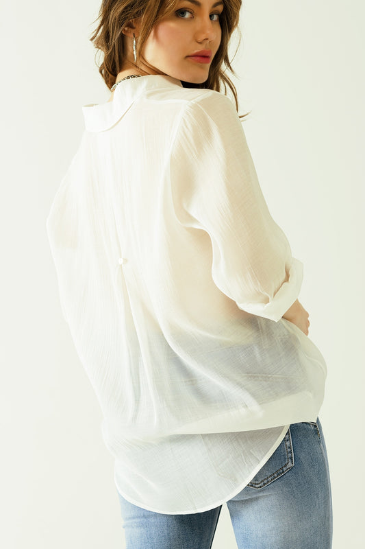 Camisa de tencel semitransparente con bolsillo en el pecho en color blanco