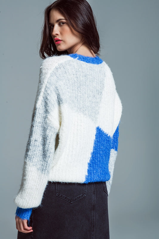 Jersey oversize color block en canalé grueso azul y blanco
