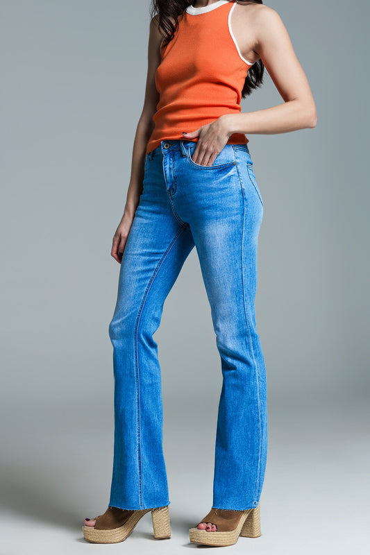 Vaqueros pitillo de cintura regular y pierna acampanada en lavado claro