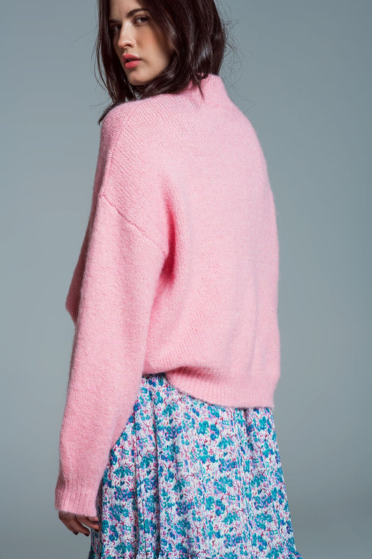 Jersey supergrande con cuello alto y mangas globo en rosa