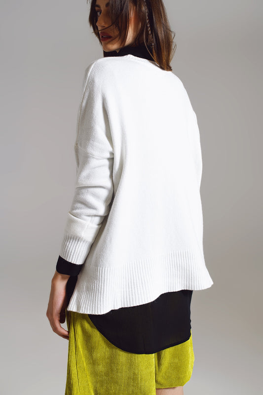 Suéter en blanco con escote en pico